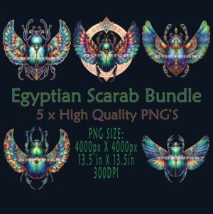 Egyptian Scarab Beetles x 5 Bundle – Egyptian Scarab Beetles in Watercolor PNG, Sublimation, Digital Design, Instant Download, High Resolution.